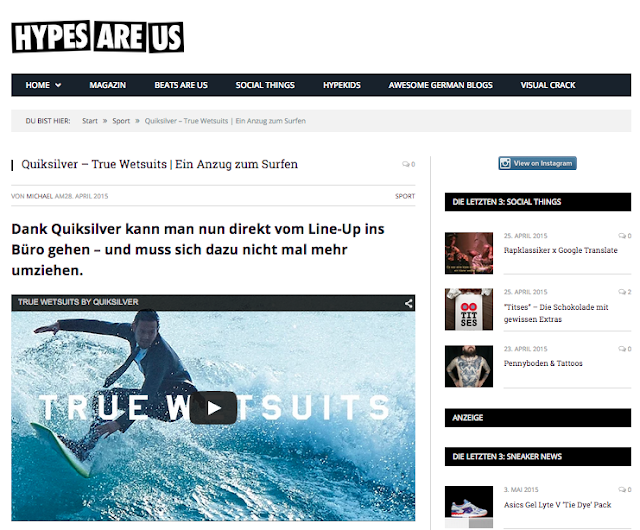 Hypes are Us, a famous lifestyle blog features the True Wetsuit by Quiksilver !