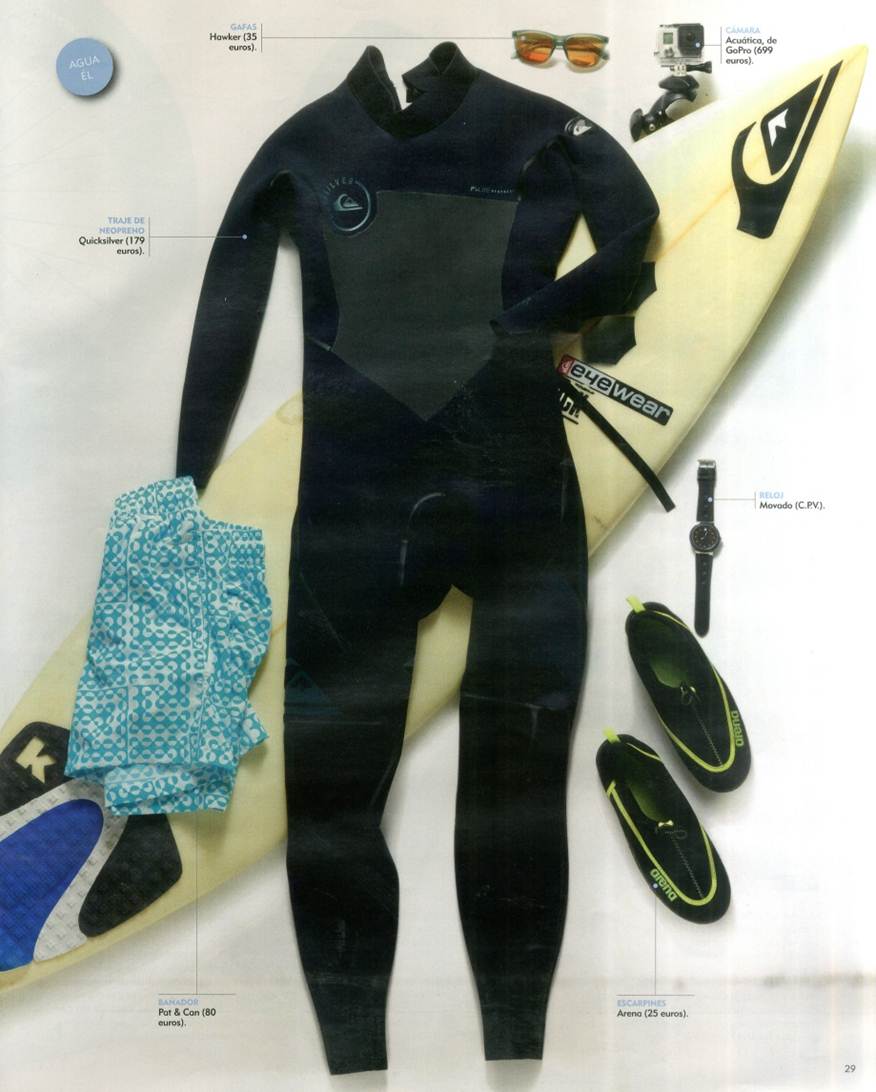 The Spannish magazine has illustrated a surf dedicated page with Quiksilver wetsuit and surfboard.